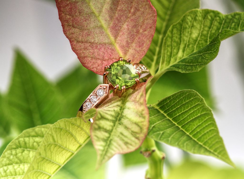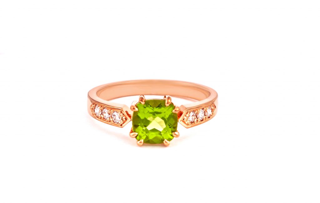 Prsten s olivínem a diamanty