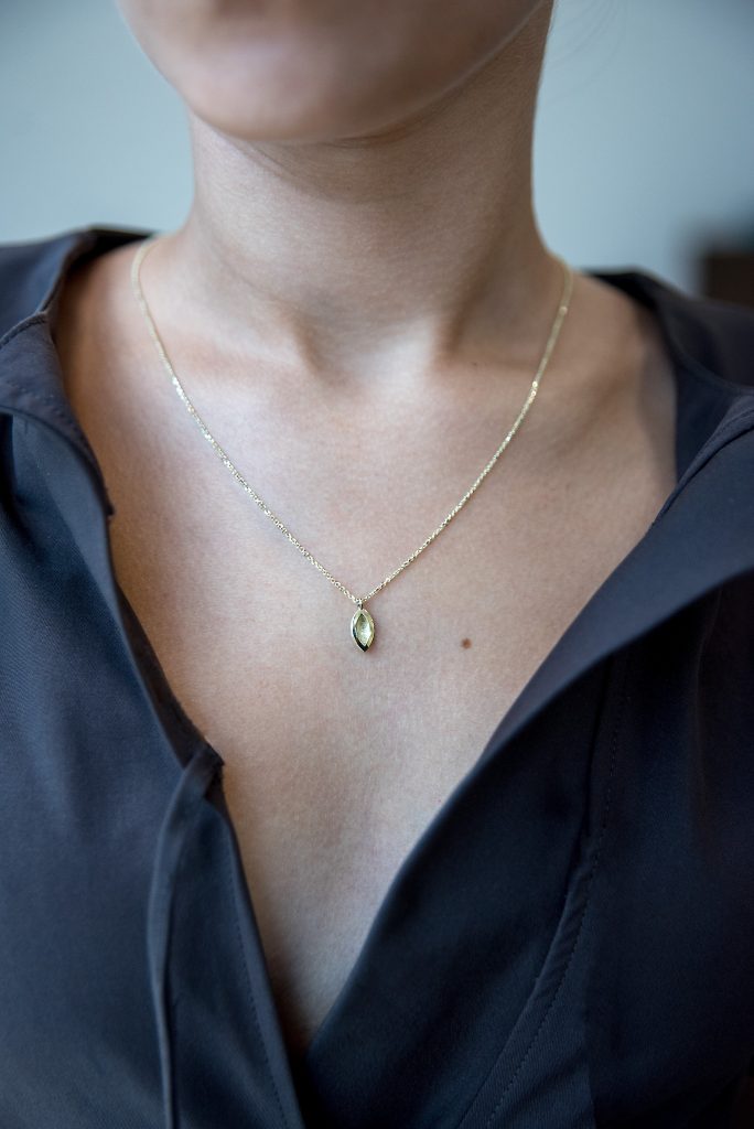 Decentní řetízek ze žlutého zlata s oválným přívěskem. Lesklé plochy podtrhují čistý design a zvýrazňují krásu zlata. Minimalistický doplněk, který se hodí ke každému stylu.