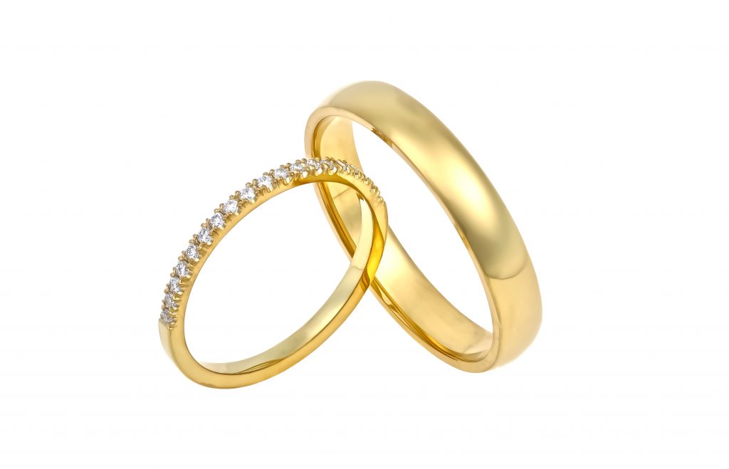 Tyto snubní prsteny představují jemnou a elegantní volbu pro páry, které preferují decentní design s klasickým nádechem. Dámský prsten je osazen devatenácti drobnými diamanty, které vytvářejí jemnou třpytivou linii. Pánský prsten je zpracován v půlkulatém profilu, má hladký design, který dokonale doplňuje jemnější dámskou variantu.